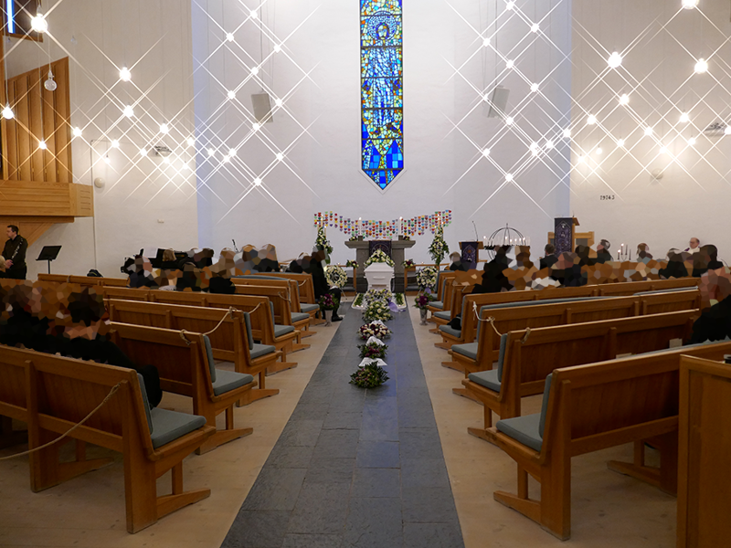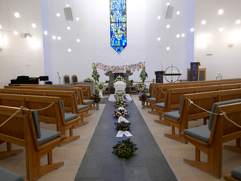 Det er plass til ca 300 mennesker i kirken. Det er også menighetssal i kirkebygget som kan leies til minnesamvær etter begravelse eller bisettelse.