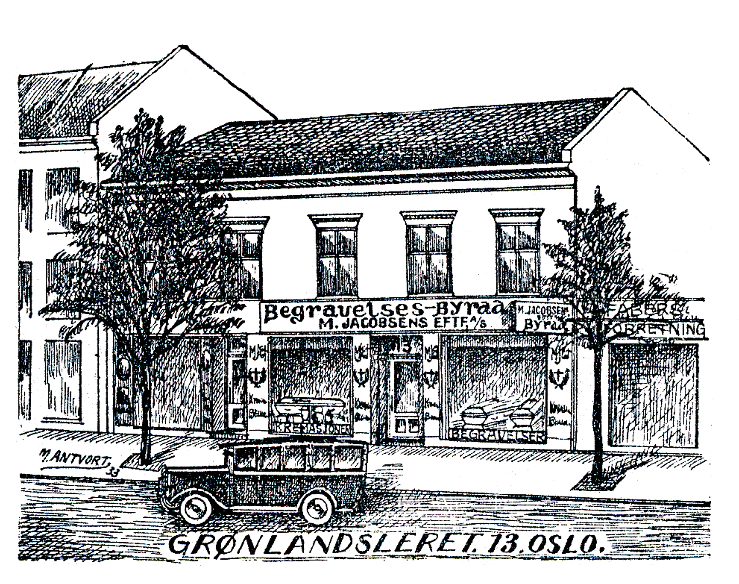 Byrået er et av Oslos eldste begravelsesbyråer og ble stiftet i 1896. Marius Jacobsen var snekker og snekret blant annet isskap som man trengte på 1800-tallet. Han ble ofte bedt om å snekre kister og startet derfor et begravelsesbyrå som en av de første i Norge. I 1901 ansatte han en slektning, Alma Jacobsen. Hun var da 18 år gammel. Hun overtok byrået på midten av 1920-tallet og i 1931 ble byrået omgjort til et aksjeselskap og fikk navnet M. Jacobsens eftf. AS.