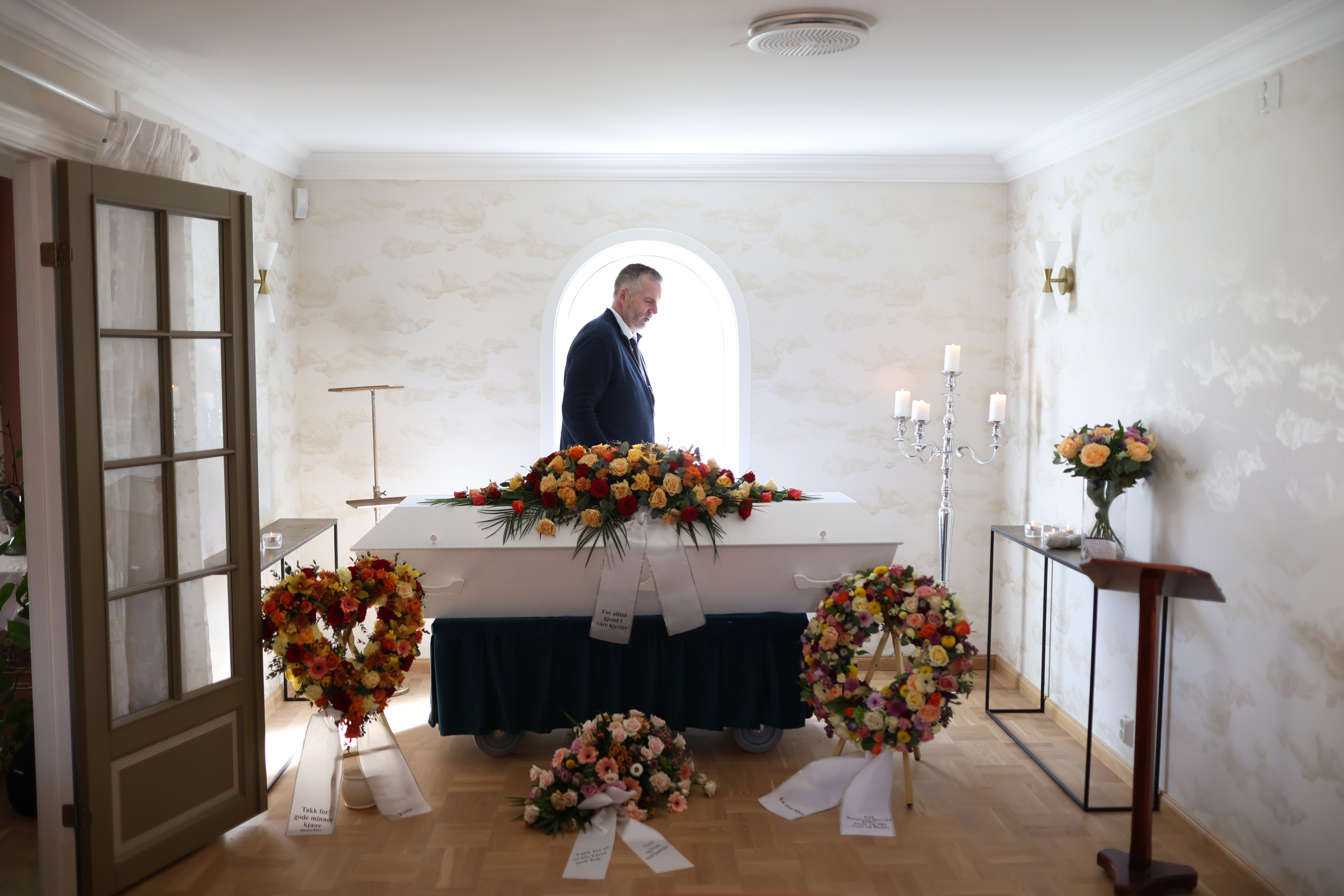 Familier samles også her til syning eller avskjed rundt åpen kiste før selve gravferdsseremonien.