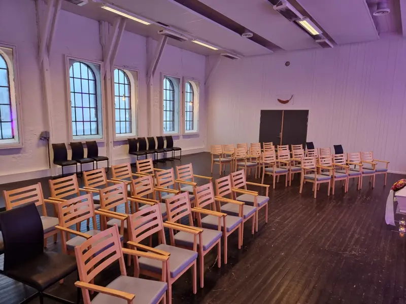 Det er 80 sitteplasser i seremonirommet, og enkel parkering på utsiden av bygget.