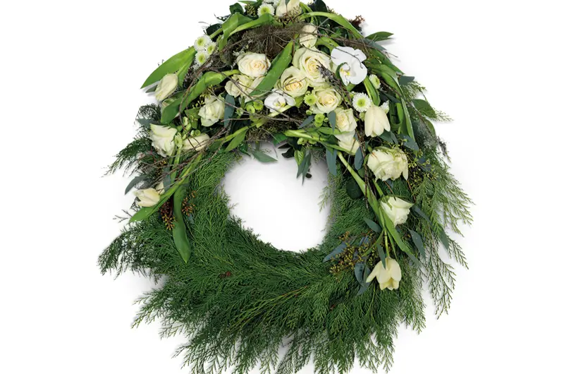 Kranser er vakre, og flotte å pynte med rundt kisten i seremonilokalet.