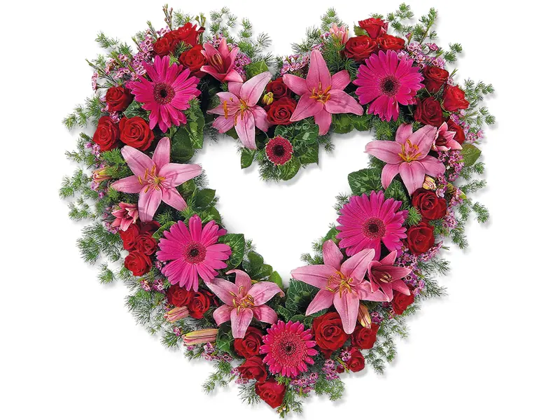 De fleste blomsterbutikker kan sette sammen blomster i svært mange forskjellige former, og hjerter er av de som er mest brukt. Hjertene kan være fylte eller åpne, og i ulike størrelser.